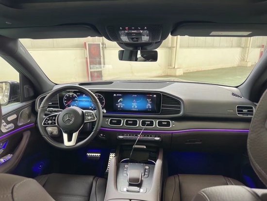 奔驰全新GLS350d内饰采用了最新家族式布局,双12.3英寸液晶屏,有效地提升了内饰的科技感与豪华感,值得注意的是,搭载了全新的MBUX系统,取代原先的Command Online系统,销售经理:张女士 18502224231 微信同步MBUX 可以透过手写、语音操作、以及触控面板来进行操作;三幅式多功能方向盘,周围覆盖了钢琴烤漆与银色镀铬,空调造型为方形设计,面板装配了贯穿式银色镀铬饰条,提升了内饰的金属质感。