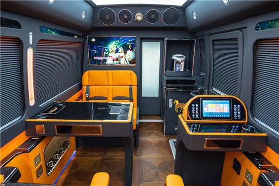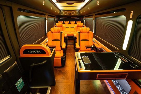 丰田考斯特全方位保证顾客的驾驶人员乃至行人的安全做出保障。除此以外华通丰业为了方便领导远程移动办公,车内可搭载传真机、车载电脑,无线WIFI等办公设备。丰田考斯特改装内饰尽显了它的奢华,32寸车载专用显示器,7.1声道立体环绕音响,可以让我们在行驶途中尽情欢唱。