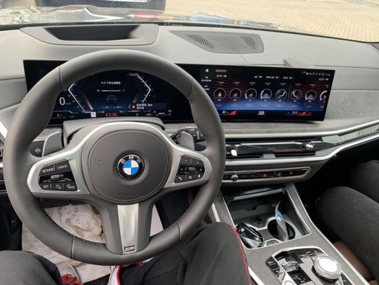 23款宝马X7内饰部分采用最新家族式设计语言,使用大量真皮、木纹饰板进行包裹。配备12.3英寸带有注意力检测的全液晶仪表和12.3英寸悬浮式触控显示屏。空调出风口与温度显示屏、实体功能按键结合在同一区域,并使用银色装饰条进行点缀。下方盖板下方为带有加热、制冷功能的杯架,全新的水晶电子挡杆造型十分精致,进一步提升了车内的豪华氛围。