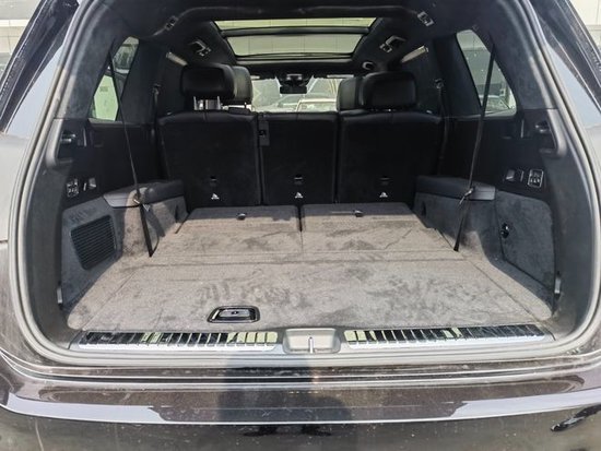 2023款奔驰GLS (配置|询价)63车尾部分,全新梅赛德斯-AMG GLS (配置|询价)整体造型与现售车型十分相似。尾厢整体造型十分圆润,进一步突出整车优雅造型。尾灯部分,该车伪装十分严密并延伸至尾厢中部,采用全新的贯穿式尾灯造型。
