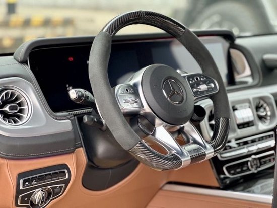 沙漠黄/棕 22寸AMG轮毂 碳纤维内饰包(AMG碳纤维方向盘,中控控制板碳纤维,前后门板碳纤维装饰条)红色安全带车身同色备胎罩AMG 大暗夜包(熏黑轮毂,熏黑大灯,黑色标字,黑色外后视镜,黑曜石漆保险杠,黑色车顶、装饰条等)独家内饰包(AMG菱形格nappa真皮内饰,真皮仪表台,带有AMG标志的头枕及地垫,前排多功能座椅带按摩和通风)