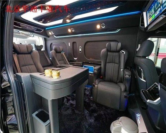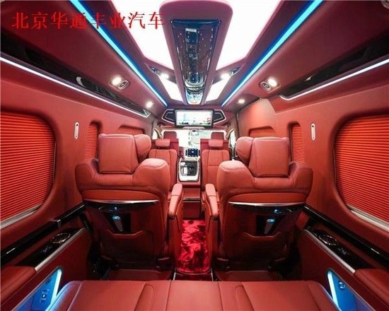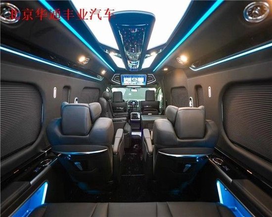 丰田海狮整车(华通丰业)升级了加强型的隔音隔热处理,车内带空气净化系统,无线充电系统。在进门侧加装了氧化铝脚踏带迎宾灯的,(华通丰业)整车都是采用纳帕级皮质进行包覆的,侧壁桃木装饰,手动百褶窗帘,后舱暖风系统,最后说说棚顶灯光,这个有智能触摸控制系统。灯光超级棒。