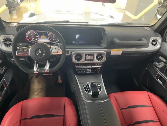 23款奔驰G63 (配置|询价)内饰方面,奔驰的设计绝对可以用惊艳来形容,无论是经典车型还是超豪华车型甚至是入门级的豪华车上,奔驰的内饰都会让你眼前一亮,当然了这也是奔驰的一个特色。所以这部全新的G63在内饰的表现上也是情理之中的,但是细节上还是有些小小的意外。这种感觉是打开车门的瞬间就能够感受到的。首先仪表和中控屏依旧是采用了同一款液晶屏显示,第一感觉就是科技感爆表。而其他方面例如方向盘,空调出风口,挡杆等等的设计充满设计感。
