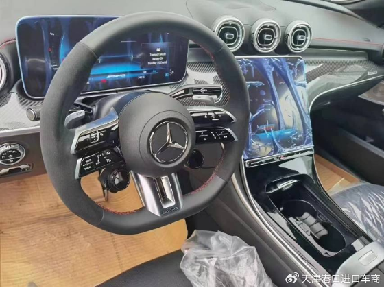 全新一代AMG C 43 4MATIC旅行车的内饰设计也与全新奔驰C级没有太大差别,整车以黑色内饰搭配红色缝线为主题,细节处加入更具运动特质的碳纤维材质装饰,再配合上红色安全带,翻毛皮方向盘以及AMG专属徽标等元素,将整个座舱的运动氛围烘托到了新高度。新车车内升级为AMG平底运动型方向盘,两侧加入打孔设计,背部设置大尺寸的换挡拨片,下方还具备运动模式的一键启动按钮,看起来极具仪式感。此外,新车的MBUX信息娱乐系统也将增加各种AMG特定的显示和功能。