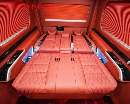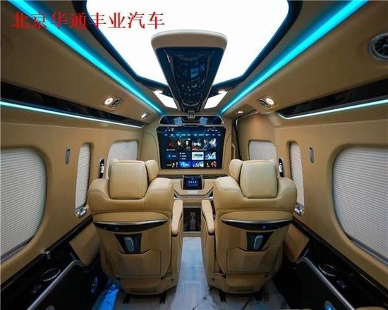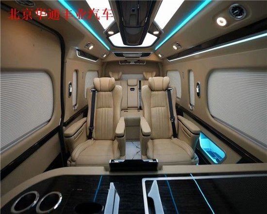 丰田海狮整车(华通丰业)升级了加强型的隔音隔热处理,车内带空气净化系统,无线充电系统。在进门侧加装了氧化铝脚踏带迎宾灯的,(华通丰业)整车都是采用纳帕级皮质进行包覆的,侧壁桃木装饰,手动百褶窗帘,后舱暖风系统,最后说说棚顶灯光,这个有智能触摸控制系统。灯光超级棒。