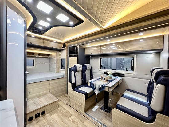 戴德房车,作为国产房车老品牌,旗下不仅有着上百万的碳纤维高端车型,也有着普通人甚至初学者所需要的中端和低端入门版的大众车型。而在戴德众多车型中,云游系列双拓展房车,以其强劲动力、800锂电+1000太阳能、6座3床12㎡生活空间等高端配置,占据着中端市场。恰好,今日北京房车展全新发布了云游四海系列的高端进口依维柯房车。Vx:YH_ZF-2020,(_详情垂询:l33-2195-6679_)所以今天咱们就来聊聊这款戴德云游四海进口依维柯双拓展房车!