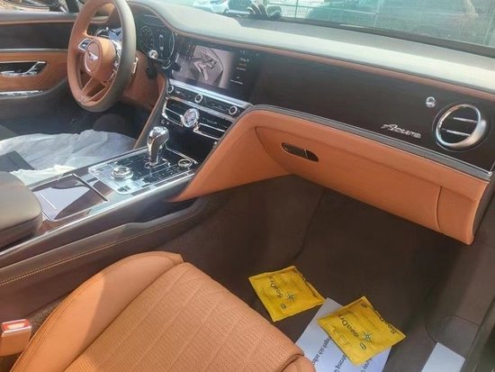 欧规22款宾利飞驰V8 颜色:黑/棕 配置:20寸银色轮毂,黑棕双拼,木纹内饰,商务四座,座椅缝线,头枕刺绣,双色方向盘带加热,色彩包吸烟包,城市包,舒适包,发光宾利车标,不锈钢格栅,全景可滑动天窗,4座LED迎宾灯,旋转屏