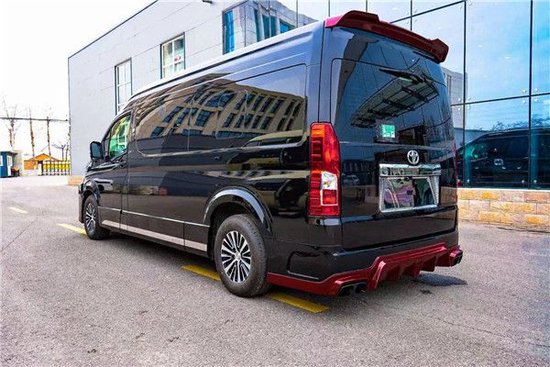 2022款全新进口丰田海狮3.5L汽油改装商务车13座10座6座7座8座9座定制埃尔法 (配置|询价)原车座椅,隔断,实木地板,鹿皮顶棚,星光顶,冰箱,车载电视等等,华通丰业采用了复古式的设计风格来致敬初代车型,与车身颜色不同的前保险杠、而A柱至D柱则采用了黑色涂装,以及白色抛边的轮拱,再搭配15英寸黑白双色的复古式轮圈,无一不是在体现出上个世纪 的设计元素。