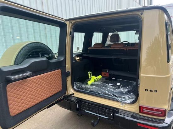 配置:21寸AMG轮毂、AMG红色烤漆刹车卡钳、不锈钢外观包、AMG套件、雷达测距、几何多光束大灯、前后行车雷达、主动泊车、360环车影像、AMG行驶控制阻尼悬架、驻车辅助系统、100升加大油箱、大拖车勾、G系专属隐形天窗、多功能方向盘、GT弹射、高级真皮座椅、前座椅通风加热按摩、后座椅加热、红色安全带、给钢琴漆内饰、独立多溫区空调、柏林之声高级音响、中控双液晶大屏显示、多色氛围灯、便捷收纳行李舱盖板