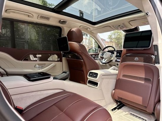 奔驰GLS450升级为迈巴赫GLS600后,内饰的视觉效果更加豪华,方向盘也是全新的三辐式多功能、改装后内饰和外观采用了更多的机械元素,稳重感十足。12.3英寸的显示屏更显科技感,面板全部是细腻的真皮覆盖,质感十足。