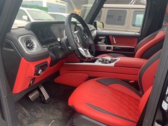 颜色:磨砂黑/红 特价275万 配置:22寸熏黑五幅轮毂,暗夜包,独家内饰包(菱形格子皮),AMG方向盘标识 座椅舒适包(前座椅通风加热按摩),黑钢琴漆内饰,同暗夜黑色前保护杠