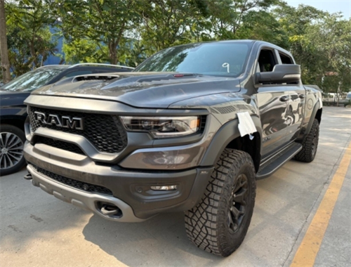 霸王龙的车身前半部分,带有很多发动喷罩和进气格栅。新款霸王龙还有一个小设计得给它点个赞,那就是前机盖中网上新加三个小黄灯,以前大家开越野车时,都喜欢给前机盖中网上加装三个小黄灯,这些厂家都看在眼里,记在心里,现在霸王龙原厂制造时就加装了,以后再也不用自己花钱改了。霸王龙前半车身还带了很多散热孔,因为霸王龙6.2T的发动机动力强劲,更需要大量的尽快的散热,密集的散热孔可以让它顺畅呼吸。霸王龙前脸正中的进气隔栅上有RAM的标志,气场强大,显示了霸气的含义。霸王龙的大灯方采用的是几何多光束大灯,照明效果是自是不必多说。[更多车型配置 最新行情 分期政策,请咨询大路汽车任经理:18526401193(同微信),关注朋友圈 每天更新平行进口新款车型 配置 实车照片及最新优惠政策。]