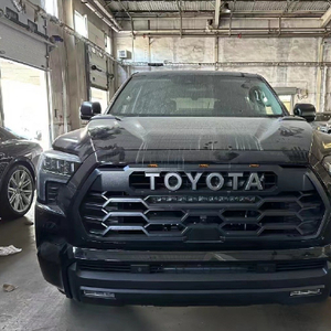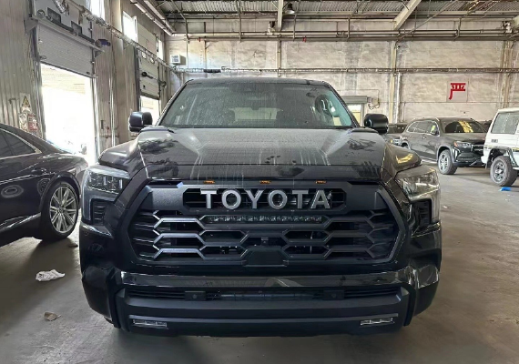 新车和此前发布的全新坦途都是基于TNGA-F平台打造,在设计风格上有很高的相似度。其中一款车型的前脸看起来和坦途基本一样,特别是大尺寸的横向进气格栅以及两侧的L形大灯组,不过格栅和下包围并未像坦途那样是相连的,但却显得车头更加霸气,而且还增加了些层次感。此外,全新红杉还提供了另外两种前脸样式可选,包括蜂窝网状设计以及熏黑波浪形并搭配了“TOYOTA”标识的进气格栅造型。另外,车头上的雾灯组都设计在下方护板上,点亮后有很高的辩识度。