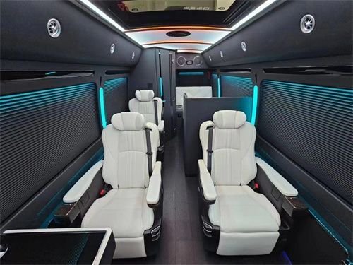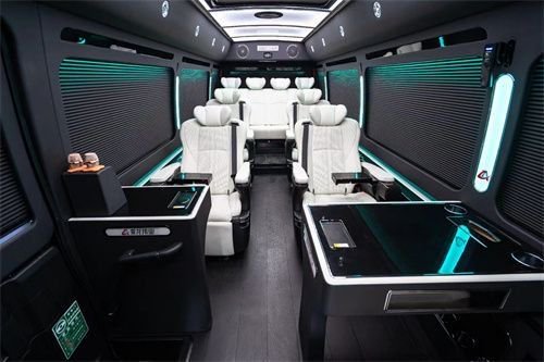 在乘坐方面,您也大可放心,考斯特配置有六张阿尔法同款航空座椅配置有通风按摩加热功能以及独立的腿托,后排则是四张可以一百八十度放到成床的沙发座椅,不论乘坐还是临时休息都十分舒适。另外在每一张座椅的扶手上都装配有无限充电,杯托和220V的五孔取电的电源接口,可以说是十分人性化的。