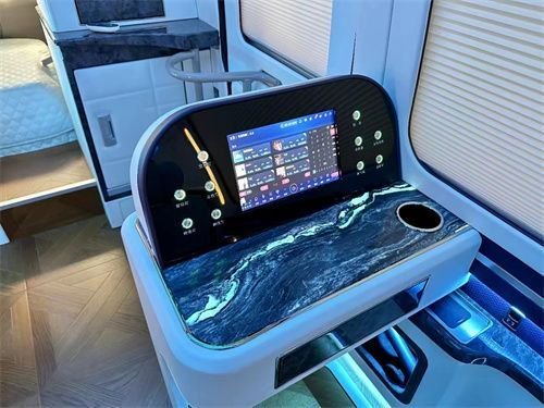 随车配置的办公桌由名贵的奢石打造而成,能够发出淡淡的微光,充分展现出神秘优雅的气质。用于随车处理公务推进项目进行,进一步利用时间提高工作效率。