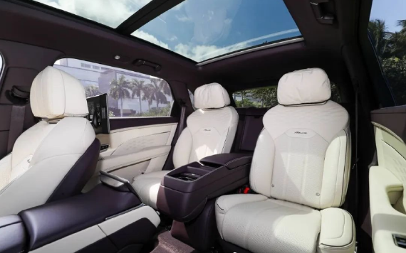 23款宾利添越长轴座椅设计彰显劳宾利添越的品质与工艺,简洁而现代的马蹄铁图案,强调座椅的支撑力。整体椅背由一整张皮料精心塑形,打造出极为立体的表面。