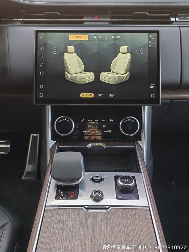 标配:全景天窗,环车影像,雷达测距,并道辅助,底盘升降,二代地形反馈,电吸门,英国之宝3D环绕音响,温莎打孔真皮座椅,前后座椅加热,20项前排座椅电动调节,后排座椅电动倾斜,液晶仪表盘,中控13.1寸大屏,实木内饰条,前、后雾灯,LED尾灯,盲点辅助,车道保持辅助,脚感电动尾门,防眩目带电动折叠视后镜