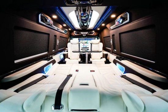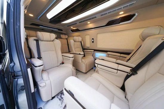 里面的座位布局虽然是9个座位,但看起来并不拥挤。车厢设计宽敞,乘客区中间有一条过道将两个座位分开。椅子方便骑乘和进出。