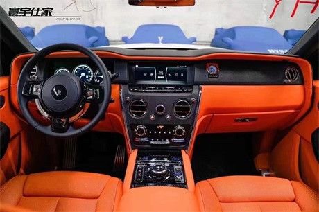 22款劳斯莱斯库里南中控屏幕首次采用了触控设计,表现出了鲜明的科技感与现代感。中控屏幕内部界面采用简约商务风设计,显示清晰细腻。多媒体面板两侧集成了诸多功能,左侧包括泊车雷达、车身升降、倒车影像,右侧为陡坡缓降和越野模式。并且该车还配备有夜视和视野辅助系统、四摄像头全景监控系统等诸多前沿技术。