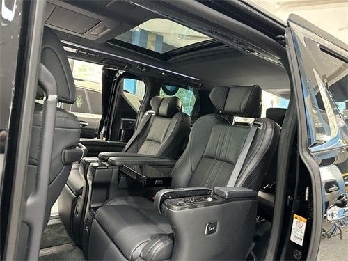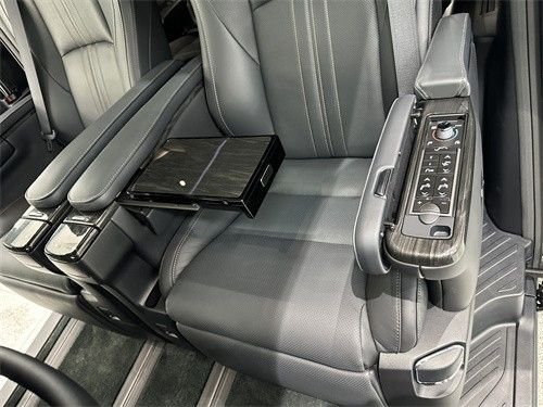 2023款雷克萨斯LM300的前排和后排被分隔开,使得后座成为了一个完全私密的尊贵空间。LM的门槛很低,并采用了阶梯设计,有利更加从容地上下车。前后排之间的“隔板”很厚,上面也集成了很多的功能,左侧储物格上方布置了蓝光播放器,能为车内影音系统提供质量更高的媒体源。