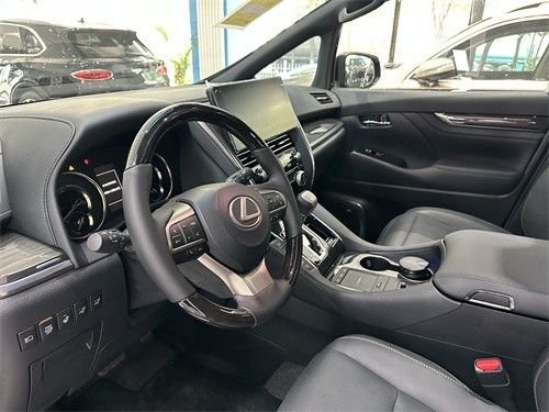 雷克萨斯LM300h内饰方面,打开车门,一股豪华气息扑面而来,新车提供纯黑色内饰和黑白撞色内饰两种风格可选,中控台部分搭载一款方正的大尺寸液晶显示屏,下方是对称式物理按键区,视觉效果十分上档次。三幅式多功能方向盘搭配握感厚实的档把,整体显得十分动感。7座车型采用了2+2+3的布局,配备了12.3寸中控屏幕,17扬声器、自动刹车、全景影像、卡片钥匙、车载电视等。