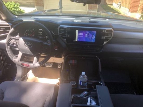 22款丰田坦途的内饰较为简洁大方,在色彩设计上基调较深,处处彰显的科技感和运动感还是暴露了这款车的特点,车间内的储物能力也十分强大,对于这种加版皮卡来说储物空间吝啬说不过去了,如果细数的话,车内光水杯架就有不下与10个,分别在前排扶手箱处、后排扶手处以及车内门板等各处一应俱全。