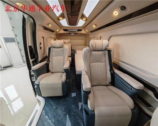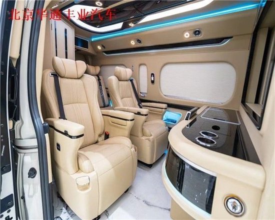 丰田海狮整车(华通丰业)升级了加强型的隔音隔热处理,车内带空气净化系统,无线充电系统。在进门侧加装了氧化铝脚踏带迎宾灯的,(华通丰业)整车都是采用纳帕级皮质进行包覆的,侧壁桃木装饰,手动百褶窗帘,后舱暖风系统,最后说说棚顶灯光,这个有智能触摸控制系统。灯光超级棒。