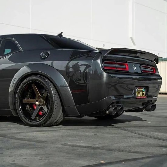 道奇地狱猫宽体红眼猫车尾上方增加的尾翼提升了它在高速的稳定性,而底部扰流器和大口径双出尾排更加彻底的彰显了它强大的性能。侧面的线条更多的是粗犷霸道的折线,很有肌肉感,配备了20寸的Group2合金轮毂,采用NTOS赛车轮胎,抓地力非常优秀。刘经理:17694965222《同微信》