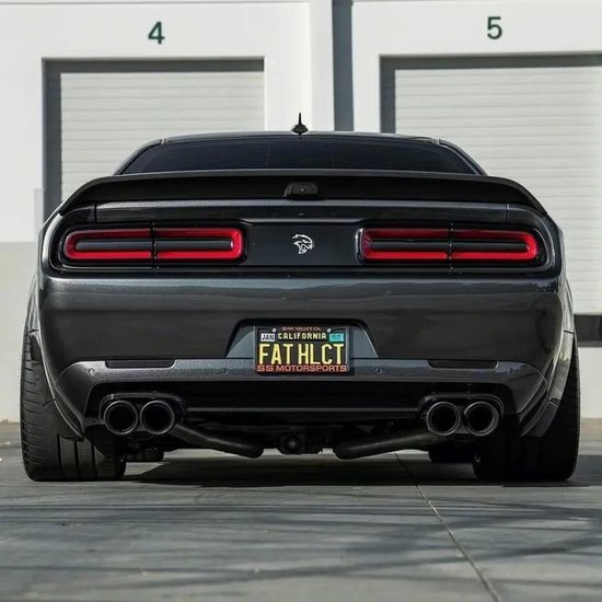道奇地狱猫宽体红眼猫肌肉跑车充满侵略性的前脸是最醒目的地方,如同张着血盆大口的鲨鱼,相当有力量。一体式尾灯采用了164颗LED灯源,尾翼提升了它在高速的稳定性。