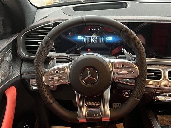 2023款奔驰GLE450内饰方面,则延续了现款S级的造型,用的是贯穿式中控台双屏设计,12.3英寸的双液晶显示屏带来的科技感爆强,并且搭载了奔驰最新的MBUX人机交互系统,采用搪塑,皮革,实木,金属和碳纤维材质,三幅式平底方向盘动感十足,头顶一个全景天窗,座椅用的是双色搭配的运动风格座椅,舒适性和包裹性也比较好。