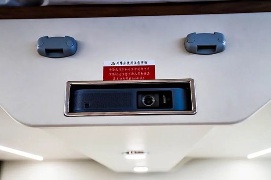 尾置会客区的优势有很多,比如远离驾驶舱,可以规避发动机产生的噪音和振动;另外,针对这台宇通威迈E,正向座椅的设定还能减少晕车情况。