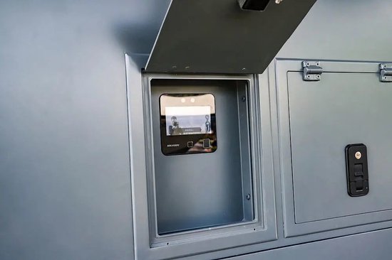 房车中门匹配了一套人脸识别系统,安防系统还包括4路监控、全彩夜视、人形识别报警等,保证车内外安全。