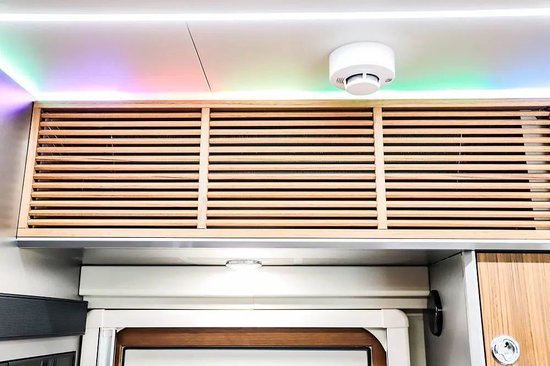 宇通威迈E生活区采用ENF级环保板材,地板选用游艇级柚木地板,并且进行了植物油抛光处理,整体照明系统包含宇通定制顶灯、阅读灯、氛围灯带,营造出了偏向年轻现代的内饰氛围。