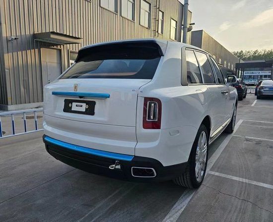 劳斯莱斯库里南尾部设计十分简洁并没有采用过于华丽的装饰,矩形尾灯组颇具新意,内部还加入了直立的细灯条点亮后视觉效果极佳。该车还装载了金属排气管和防撞击滑板,进一步彰显其动力与性能。