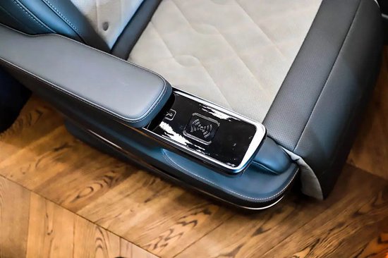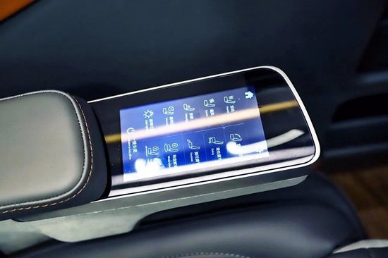 座椅控制屏幕设置在扶手上,支持靠背角度、座椅前后、腿托调节,舒适性配置还包括加热、通风、按摩、座椅记忆等功能。另一侧扶手设计成了手机无线充电板。