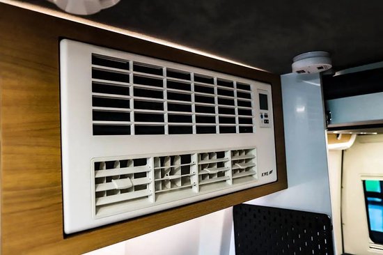 生活区空调在厨房区顶柜位置,采用48V直流电压系统,支持行驻车两用。