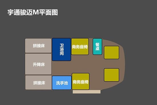 骏迈M生活区由会客区、中置厨卫区、尾置升降床组成,新车核载4人,定位2-4人少人数旅居房车,比较适用一家三口或者情侣的用车环境。