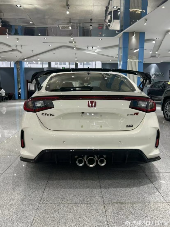 车尾最吸引人的当属那个巨大的尾翼,不仅从视觉效果上更具运动感,更是可以货真价实地为车子在高速状态下提供下压力。此外,全新的尾部扩散器也为车子增加稳定性。而位于车尾底部正中间的一大两小中置三出排气布局则让思域TYPER具有浓烈的“火药味”。