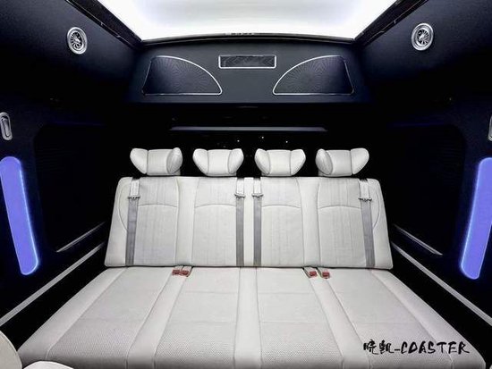 新车在内部改装实属下了很大的手笔。整车的一体式多媒体影视系统,全车构建10.2多声道环绕音响系统,并且搭载了全新欧美版星光顶,给您带来了不同寻常的舒适体验。。百褶窗帘的简单大方,豪华的布艺窗帘的尊贵和美观。绿色灯光的宁静,或者是粉色灯光的温馨。木质地板的整体舒适,或者是通道地毯和蓝色灯光的通道压条的完美统一。丰田考斯特改装商务车内饰上的设计都充分体现了作为商务用车的贴心之处。