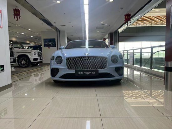 22款欧规宾利欧陆GT 颜色:炫蓝 内饰:米/热刺红 选配:21寸十幅喷漆轮毂,前座椅舒适包,旋转屏,座椅刺绣,反衬缝线,氛围灯、双色加热方向盘,脚垫 迎宾灯