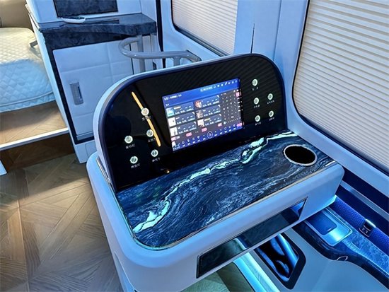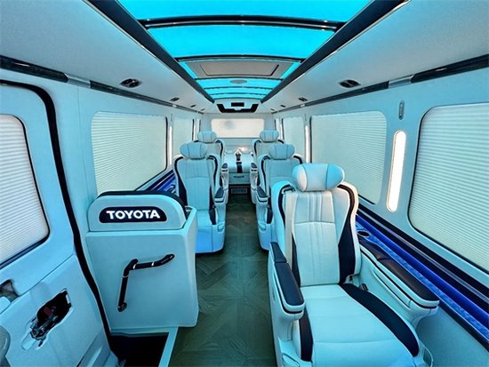 除此之外,丰田考斯特11座商务车的内饰配置非常丰富,包括了豪华音响系统、舒适的座椅按摩功能、恒温空调系统、可伸缩电视屏幕、多功能座椅间隔、倒车影像系统、高级皮质内饰等一系列高端配置,满足客户不同的需求。