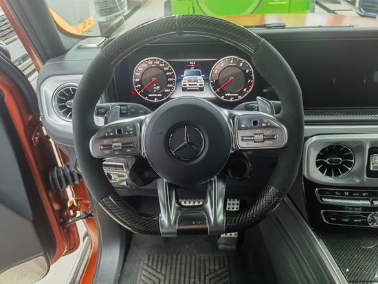 23款奔驰G63仪表盘中的信息能够以不同格式显示在双12.3英寸高清显示屏中,3种显示风格可供选择,更生动地显示车辆功能信息。AMG运动方向盘动感十足且易于抓握,新款再次升级方向盘的强大运动性能,让各种驾驶功能的操作更加精准迅速,驾驶专注力再次提升带来真正的赛车风范。