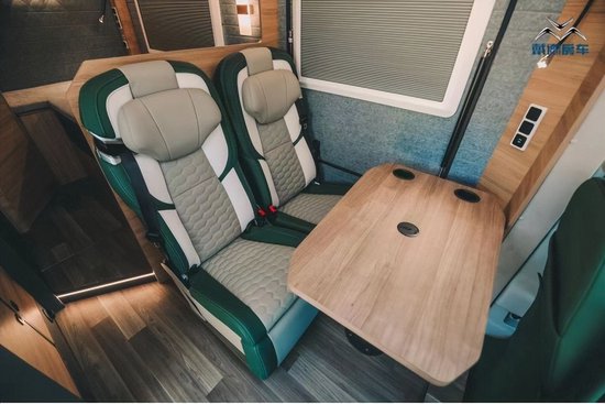 打开中门映入眼帘的是戴德URV车辆的卡座区域。卡座区域采用两张独立座椅朝前布置,具备更好的观景体验,高速行驶时也会减少晕车的感受。座椅采用雷克萨斯LM (配置|询价)级别的舒适头等舱座椅,大尺寸、全包裹,具备通风按摩加热以及座椅记忆、电动腿托等功能,能够满足长途旅行中的舒适乘坐与办公需要,轻松达成“好乘坐”的目标。