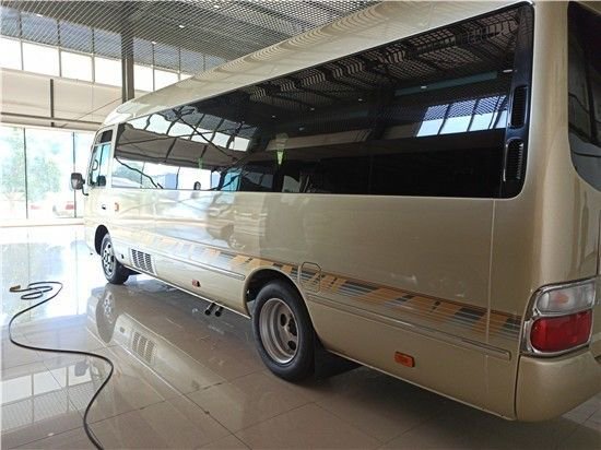 丰田考斯特改装16座改装商务车,从外观上来说,丰田考斯特16座商务车从外观的设计上来说,丰田考斯特车身长7.005米,身宽度为2.040米,车身高度为2.774米,高大宽敞的车身为乘驾人员提供更加舒适的乘坐空间。丰田考斯特16座豪华版车身颜色为米黄金属色,丰田考斯特改装16座商务车在外观的设计上也增加了一些独特的设计,在车头的设计上,丰田考斯特改装16座商务车增加了镀铬的设计,于细节之处增加车身设计的美观。