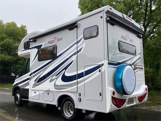 整车为铝骨架+玻璃钢的结构,做了平衡辅助测试,行驶更平稳,这也是满足美国的标准。整个顶部为一体开模成型制造,圆润的弧度,既具有美感,也提升了质感。并且整个顶部用的是中国古建筑屋脊式的造型,可是雨水平滑而下,不存在积水问题。停下来是同游有驻车支架,车辆无晃动。同时拥有一个四级风感电动3.5米的户外遮阳棚,让出行更省心。