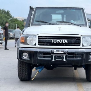 23款丰田酷路泽LC76搭载的是4.0升1GR-FE发动机匹配5速手动变速箱,最大马力228PS,最大扭矩363N·m。搭载分时四驱系统,前后桥均设有差速锁,并可以进行中央锁止。高配车型原厂就配置了8000英镑的绞盘
