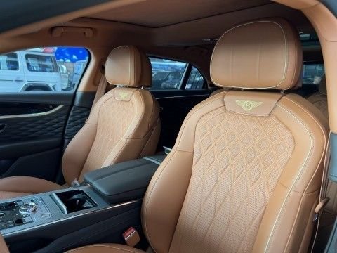 言归正传,咱们来看看这台宾利飞驰穆勒版都选装了哪些豪华的配置:五座,动态驾驶(后轮转向)全景天窗,宾利升降发光立标、三面旋转屏,亮面镀铬双菱形穆勒版格栅,亮面镀铬保险杠下部格栅,穆勒版翼子板进气口、穆勒徽章、哑光银色双拼后视镜,LED迎宾灯,穆勒照明式门边踏板,BO音响。 10辐22英寸穆勒轮毂带有自正式b标(钨矿灰与镀铬抛光双色外观)厚绒毛脚垫带B标、真皮包边,穆勒专属菱形压纹饰面中控台,黑钢琴漆面板,穆勒版专属定制中控标志,门板印有“B”标识、百年灵时钟,穆勒专属皇家棕骑配色方案、座椅滚边,穆勒标识座椅刺绣,3辐式双色加热真皮镶边方向盘,金色中控点缀。