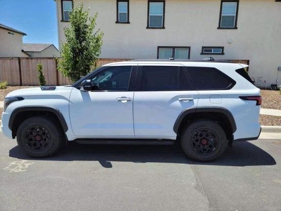 23款丰田红杉TRD PRO 白红 配置:7座 18轮 天窗 JBL音响 无钥匙进入 一键启动 多地形选择/拖车控制 分动箱和电子锁止后差速器 TRD Pro越野悬挂带FOX避震 丰田2.5安全组件 雷测 环影 多地形监测 自动LED流水灯 TOYOTA格栅带LED灯带 14英寸中控大屏 CarPlay 安卓auto 12.3英寸仪表盘 8项座椅调节 座椅记忆 前排座椅通风加热 方向盘加热 电动折叠可滑动第三排座椅 TRD铝制护板 TRD脚踏板 电尾门