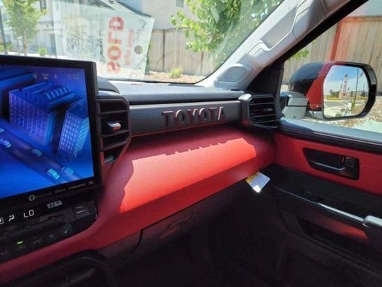 丰田红杉车内采用了大量软质材料包裹,部分区域还加入了缝线处理,显得档次感和质感十足。另外车内采用的是四辐式多功能方向盘,并保留了很多物理按键,足以满足驾驶时想要的操控感,车内的科技氛围是通过12.3英寸的全液晶仪表盘和14英寸的中控屏来实现的,中控屏两侧的空调出风口,虽然没有采用时下流行的贯通式设计,但在中控台上对称排列也别有一番风味。另外顶配Capstone车型的内饰将会采用更加豪华的黑白配色方案,并搭配胡桃木装饰面板。