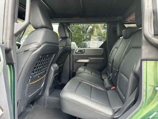 23款福特烈马Bronco车内采用硬朗的设计风格,中控台设计主次分明且有层次感,用料也厚实,多功能方向盘造型运动,中控屏幕采用内嵌式的设计增添了车内的时尚感,按键布局合理,档把设计精致,座椅宽大厚实,空间宽敞,实用性强。